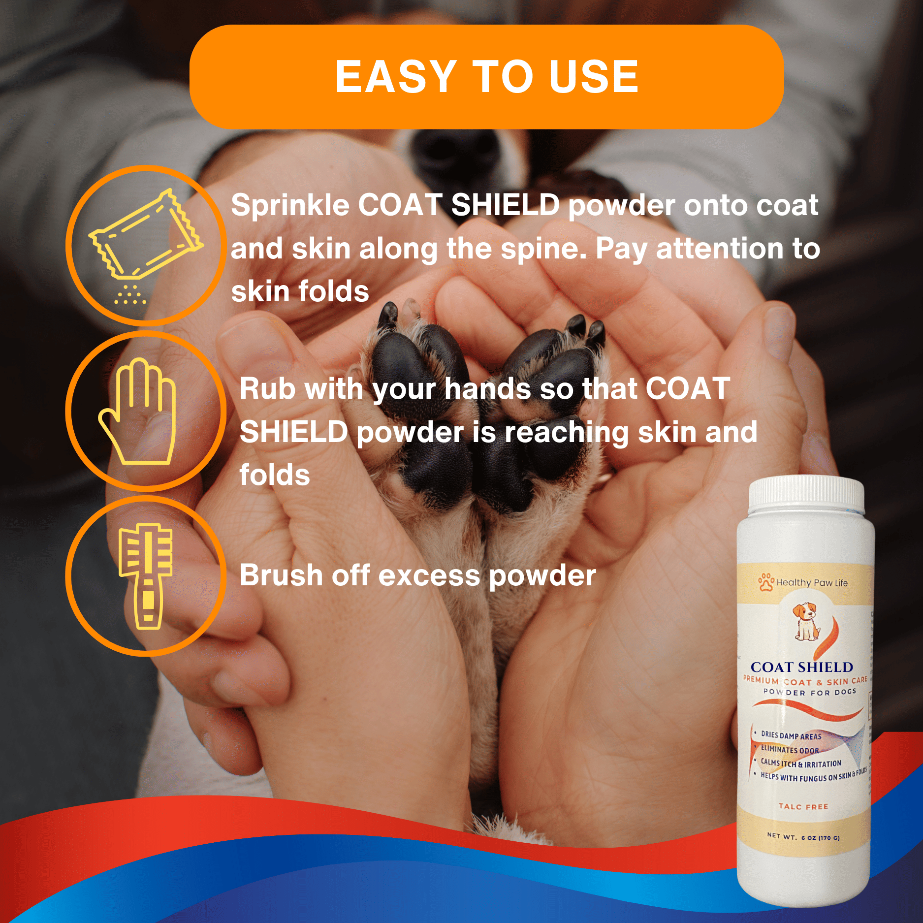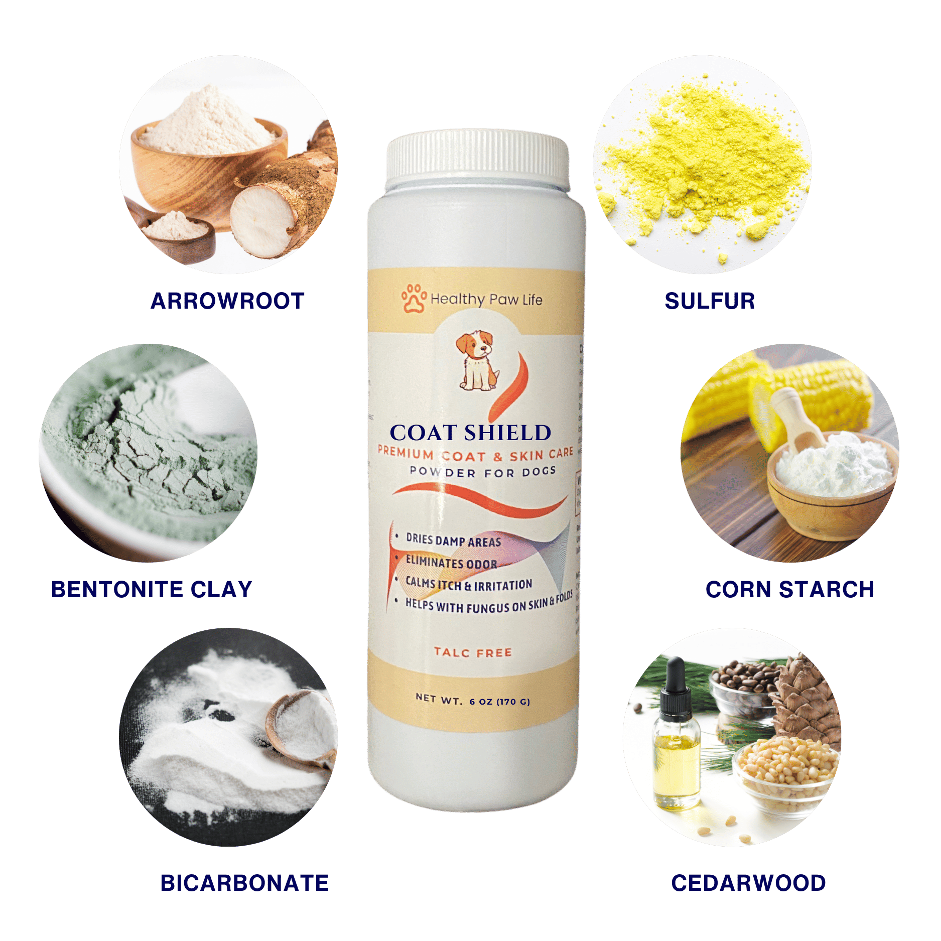 COAT SHIELD - Canine Dry Powder and Gentle Skin Cleanser for Allergies and Irritation for Dogs | Alleviate Odors and Itchiness | Holistic Remedy and S COAT SHIELD - Canine Dry Powder and Gentle Skin Cleanser for Allergies and Irritation for Dogs | Alleviate Odors and Itchiness | Holistic Remedy and S COAT SHIELD - Canine Dry Powder and Gentle Skin Cleanser for Allergies and Irritation for Dogs | Alleviate Odors and Itchiness | Holistic Remedy and S