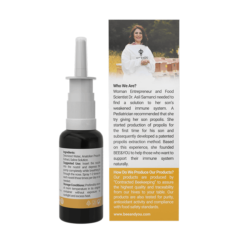 100% NATURAL & ONLY MADE WITH 3 INGREDIENTS: Anatolian Bee propolis, Deionized Water and Saline Solution.