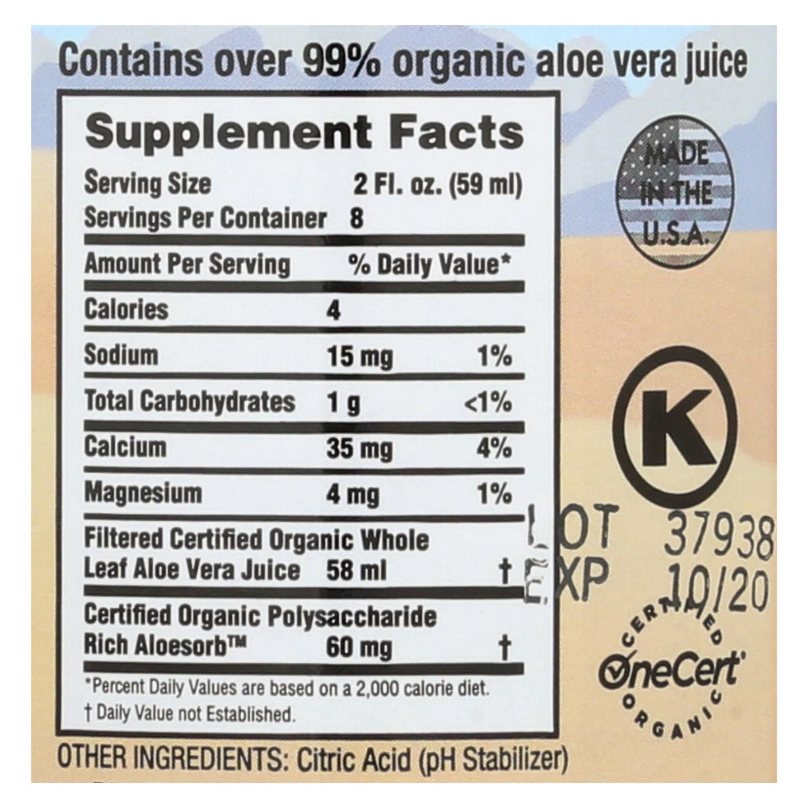 Lily of the desert preservative free whole leaf aloe vera juice is made from certified usda organic ingredients including 99% aloe vera juice rich in antioxidants. One 16 oz. Bottle of lily of the desert is a kosher dietary supplement with 35 mg. Of calcium per serving to help support a healthy immune system and digestive regularity.