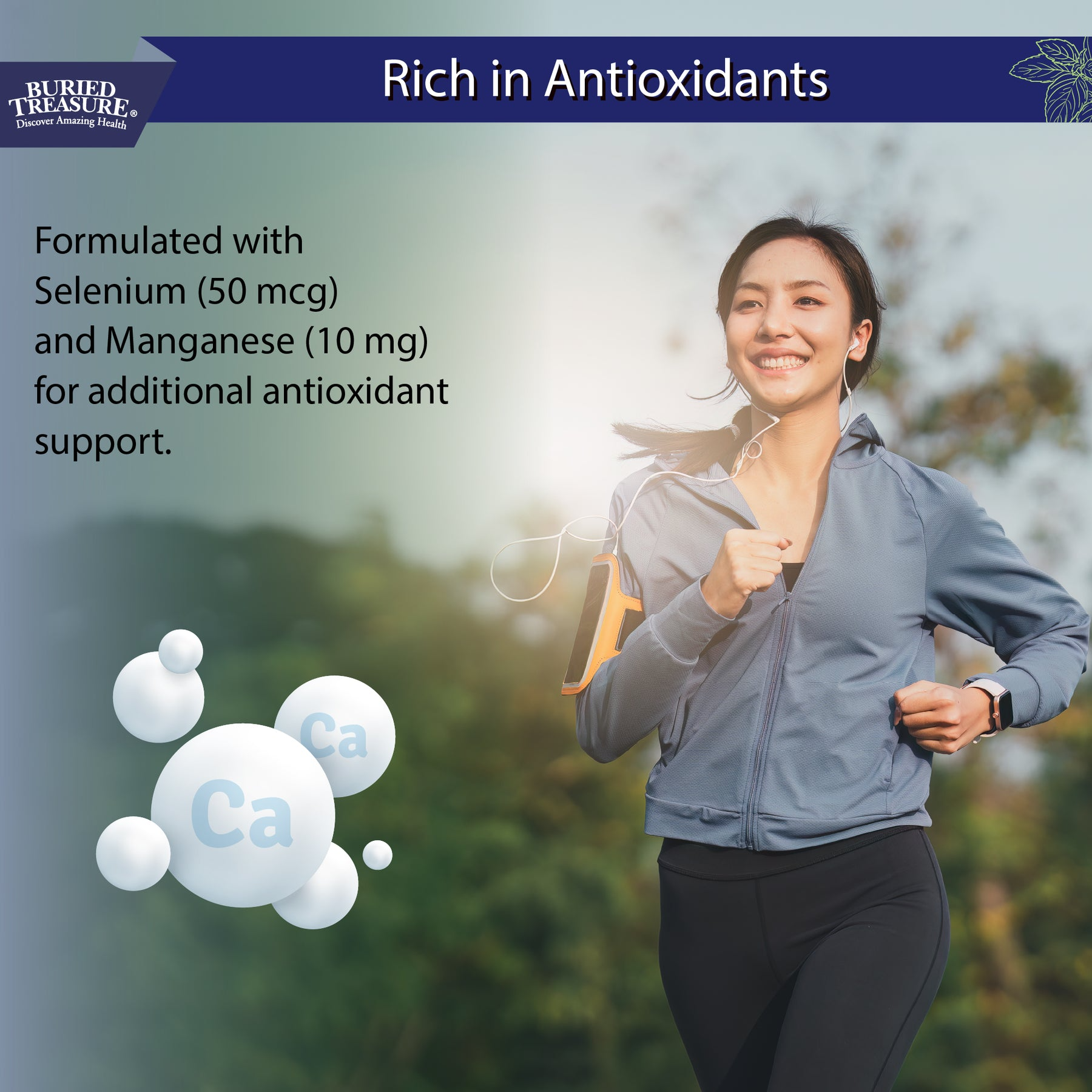 Buried Treasure Calcium Plus is a blueberry-flavored liquid dietary supplement providing calcium citrate, magnesium, vitamin D, and zinc in a convenient daily format. Each 1-oz serving contains 1000 mg of elemental calcium, along with supporting minerals that contribute to nutritional balance.