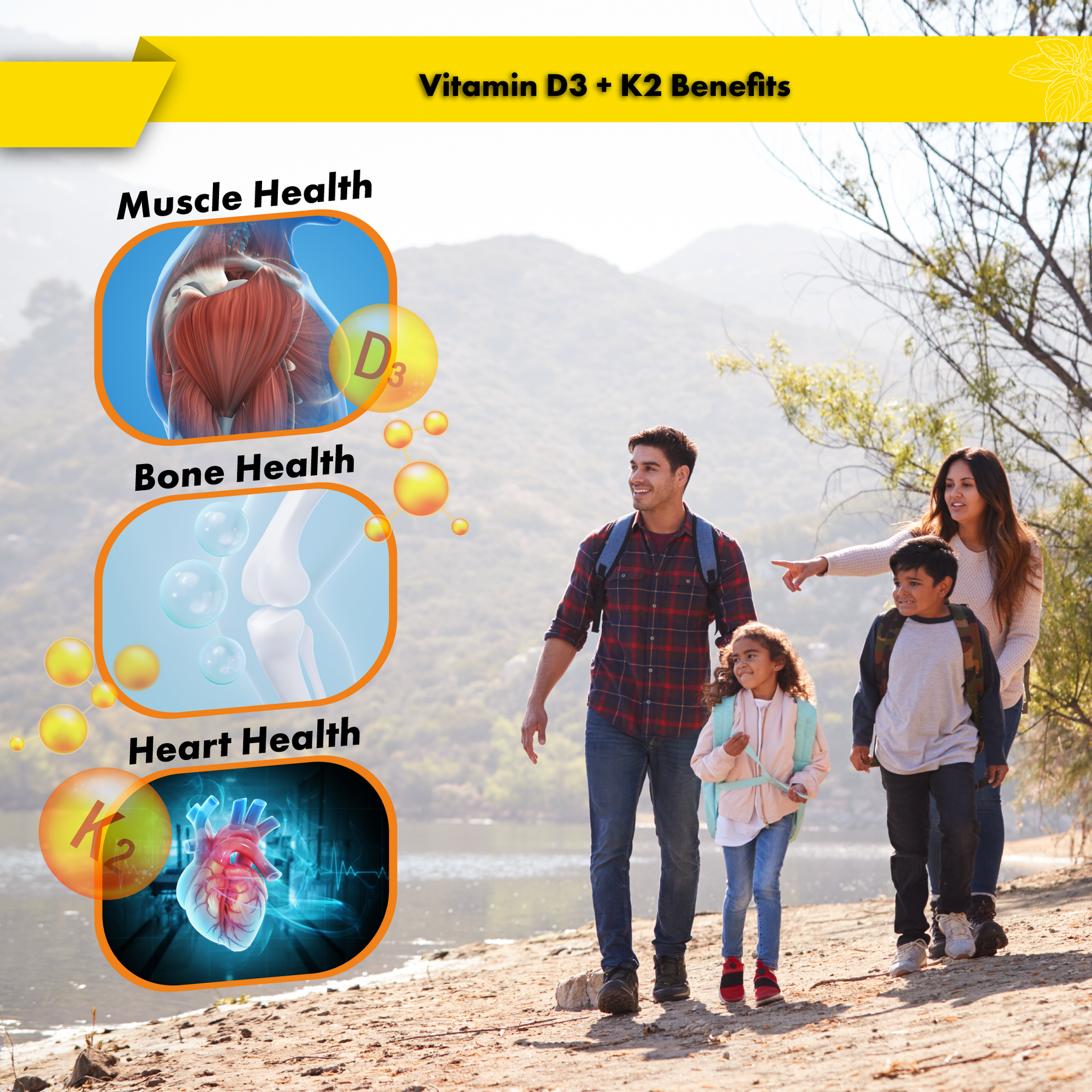 • Bone Health Synergy: D3 helps absorb calcium, while K2 (MK-7) helps direct it to your bones.